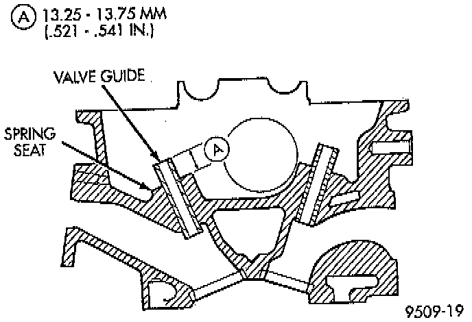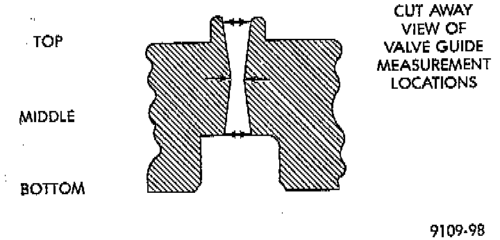 2. Using a small hole gauge and a micrometer, measure valve guides in 3 places top, middle and bottom. Refer to specifications. Replace guides if they are not within specification.