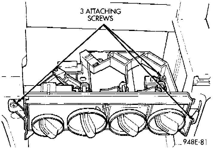 3. Remove the six attaching screws across the forward portion of the trim panel. Then lift the flange forward to disengage the three locator pins.