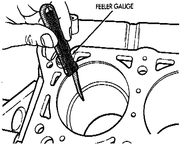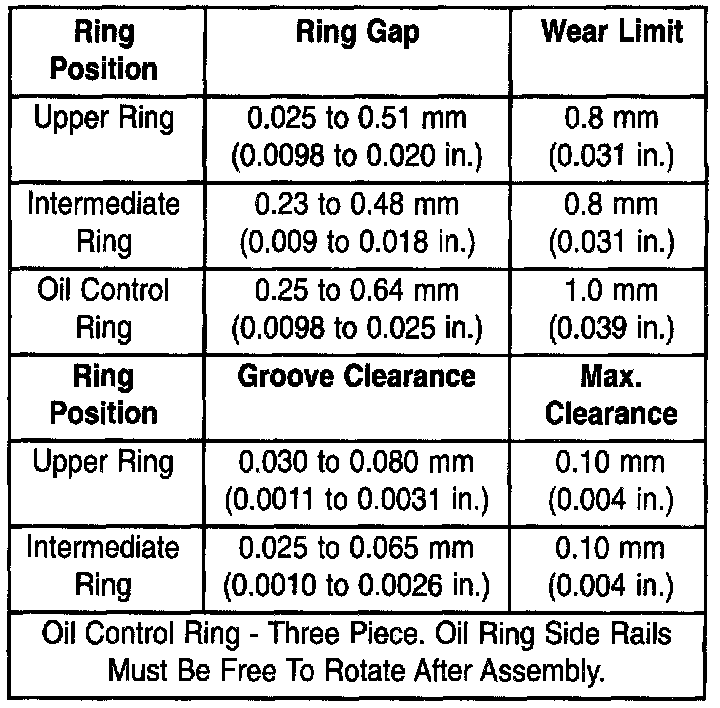 1. Wipe cylinder bore clean. Insert ring and push down with piston to ensure it is square in bore. The ring gap measurement must be made with the ring positioning at least 12 mm (0.50 inch) from bottom of cylinder bore. Check gap with feeler gauge.
