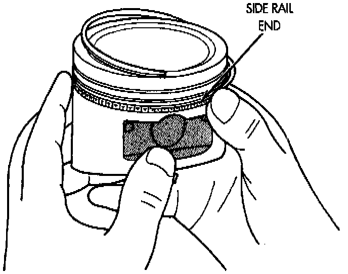2. Install the side rail by placing one end between the piston ring groove and the expander. Hold end firmly and press down the portion to be installed until side rail is in position. Do not use a piston ring expander.