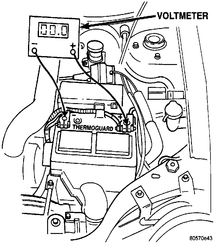 a. Touch the negative lead of voltmeter directly to battery negative POST.