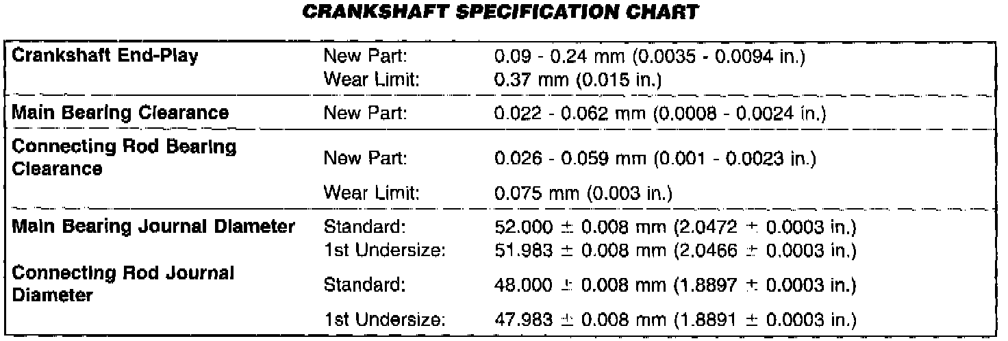 Crankshaft Specification Chart: