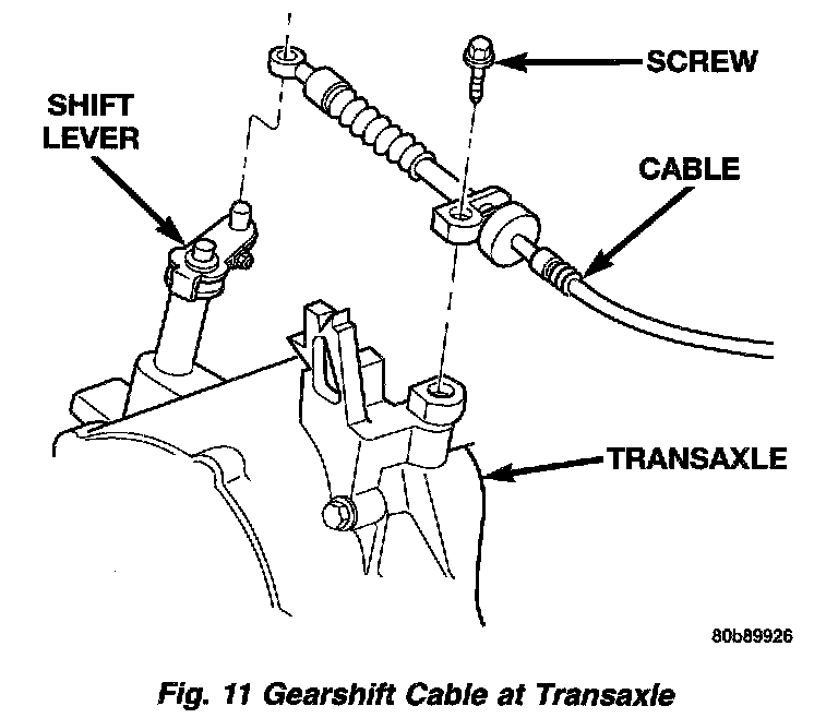 8. Remove the screw from the cable bracket at the transaxle (Fig. 11).