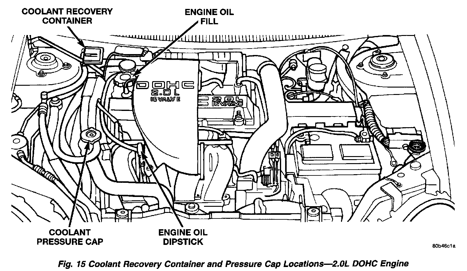 When servicing requires a coolant level check in the radiator, the engine must be off and not under pressure. Drain several ounces of coolant from the radiator drain cock while observing the Coolant Recovery Container. Coolant level in the container should drop slightly. Then remove the radiator cap. The radiator should be full to the top. If not, and the coolant level in the recovery container is at the ADD mark there is a air leak in the recovery system. Check hose or hose connections to the recovery container, radiator filler neck or the pressure cap seal to the radiator filler neck for leaks.