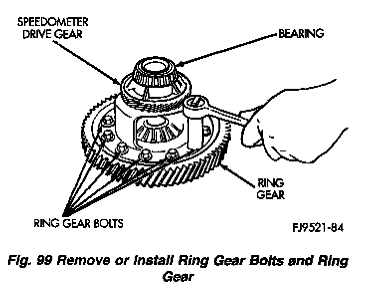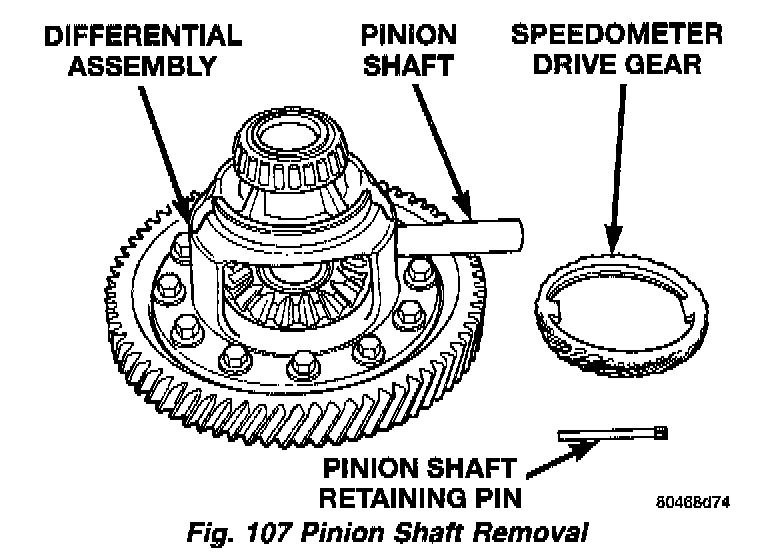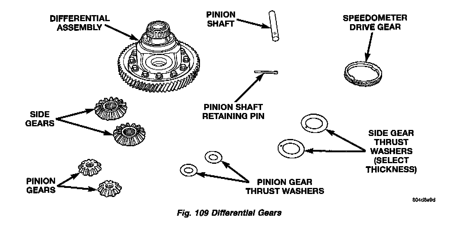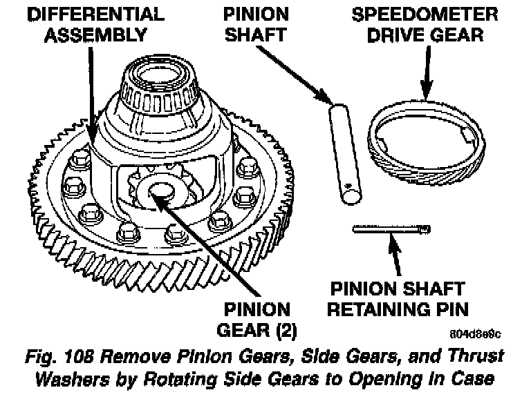NOTE: The plastic speedometer drive gear must be removed from the differential case in order to service the differential gears. Refer to Speedometer Drive Gear for service information.