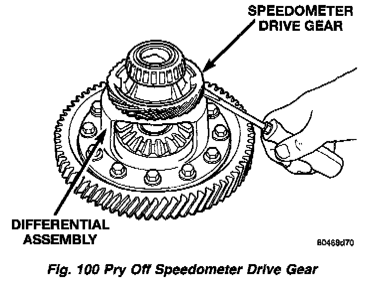 1. Pry the plastic speedometer drive gear off of the differential case using a flat blade pry tool.