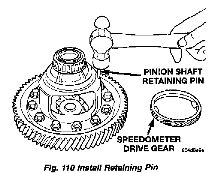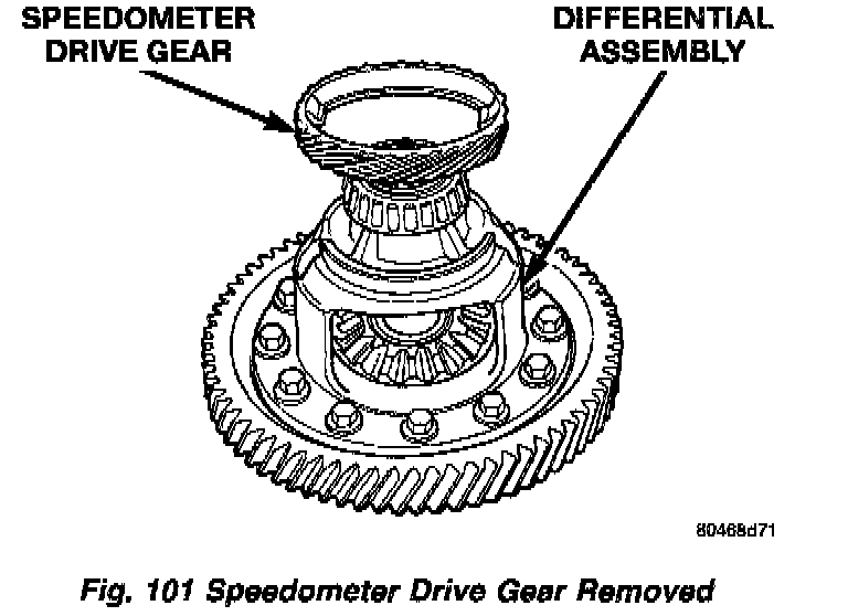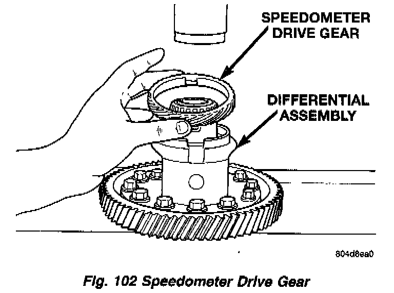 NOTE: A new speedometer drive gear must be installed on differential assembly. The lip on the speedometer drive gear must be positioned downward when installing onto differential assembly.