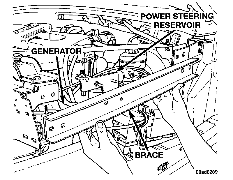 8. Install power steering reservoir to brace.