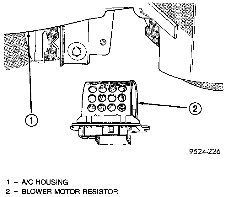 The blower motor resistor is located on the lower right side of the heater housing.REMOVAL