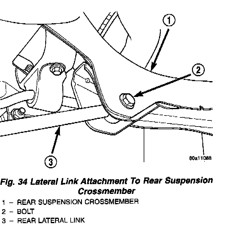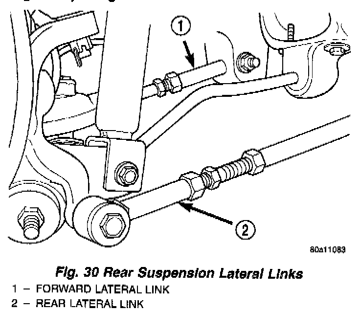 The rear suspension lateral links are only serviced as complete assemblies. The isolator bushings used in the lateral links are not serviced as separate components.