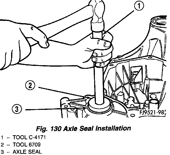 3. Install axle seal on tool #6709 with C-4171 and insert into axle shaft seal bore.