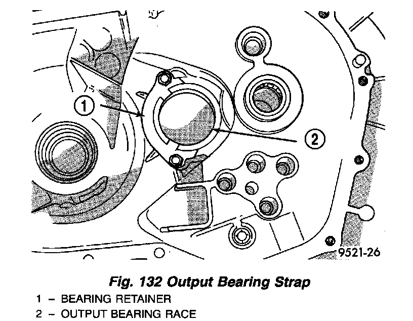 2. Remove screws at output bearing retainer strap (Fig. 132).