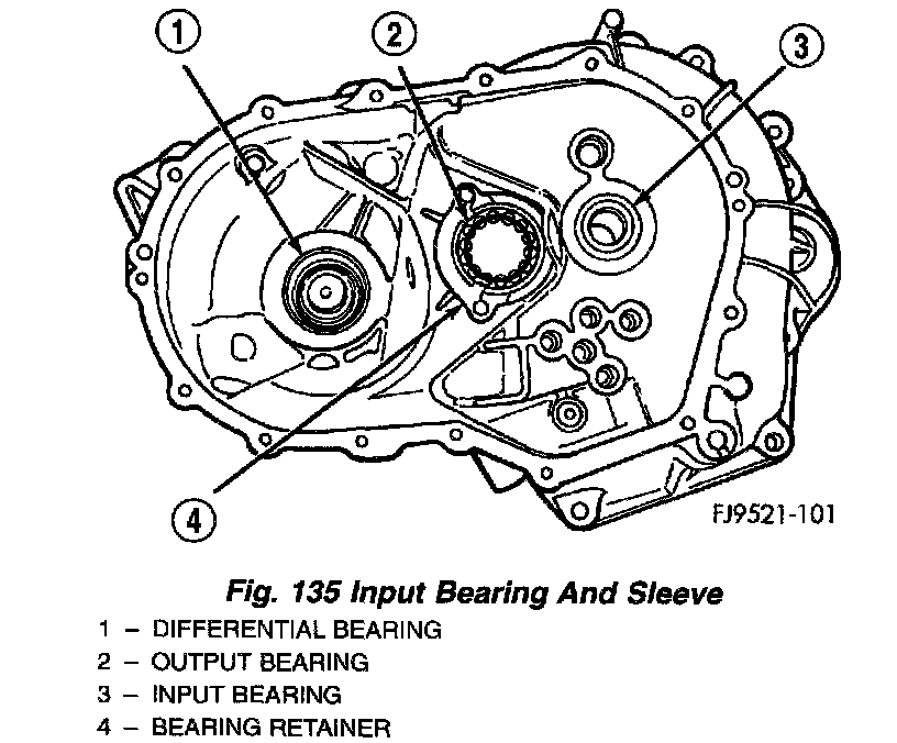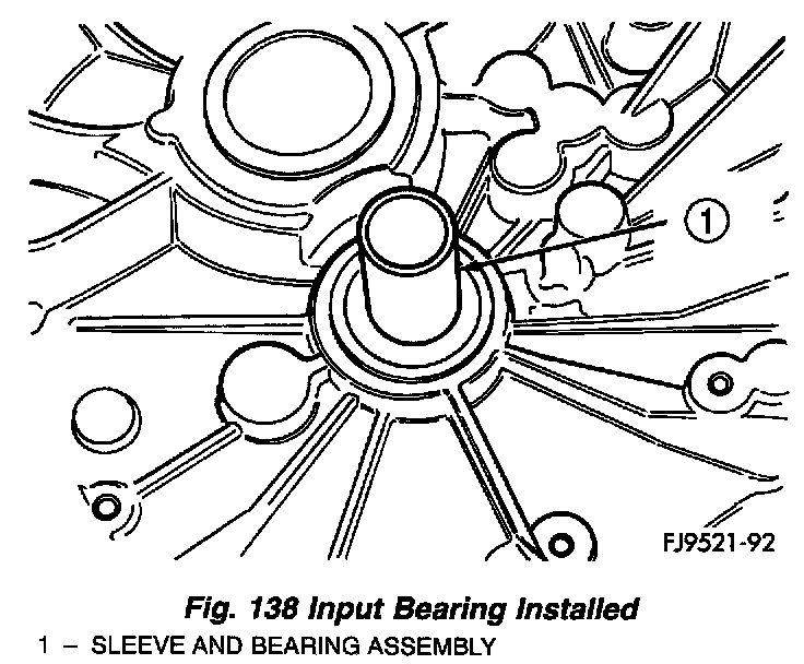 The input bearing is a one-piece bearing and sleeve unit (Fig. 135). The sleeve is the slide point for the clutch-release bearing and lever.