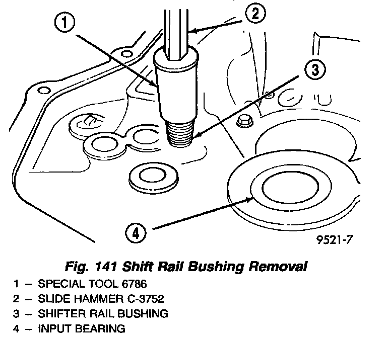 3. Remove bushing using slide hammer and tool assembly (Fig. 141).