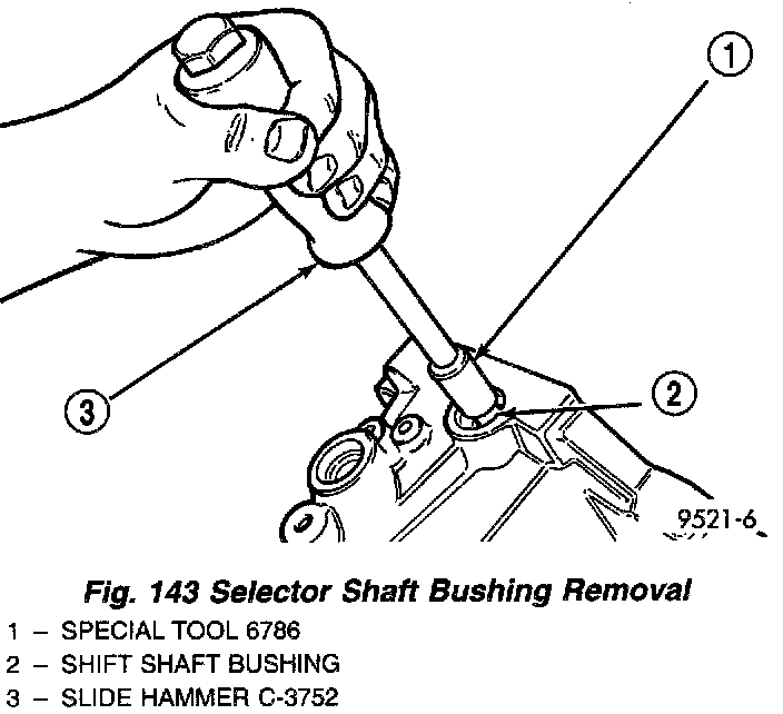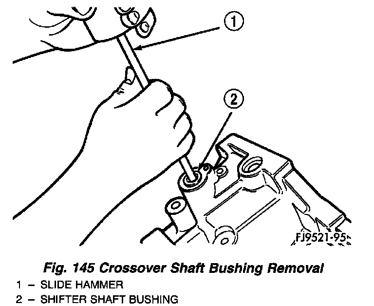 3. Using the slide hammer, remove the crossover shaft bushing (Fig. 145).
