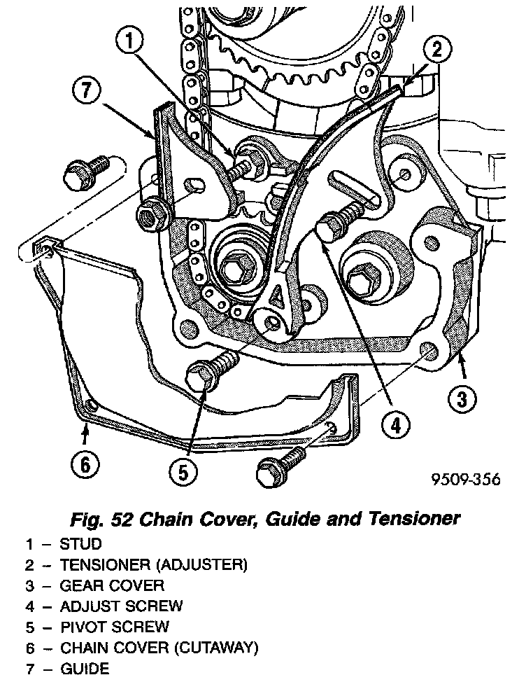 2. Remove chain cover, guide and tensioner (Fig. 52). Also see Carrier Assembly Removal for service procedures requiring only temporary relocation of assembly.