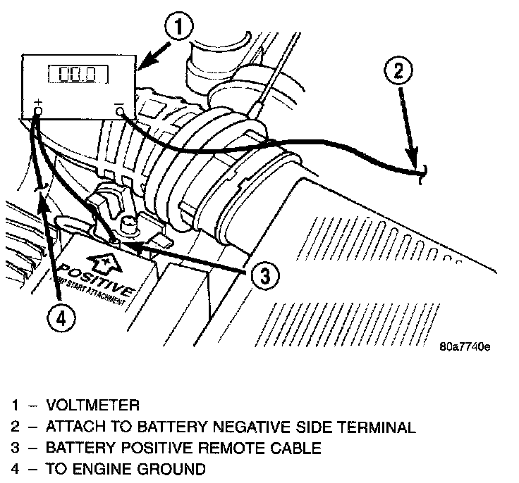 If reading is still above 0.2 volt after correcting poor contacts, replace battery positive cable as necessary.