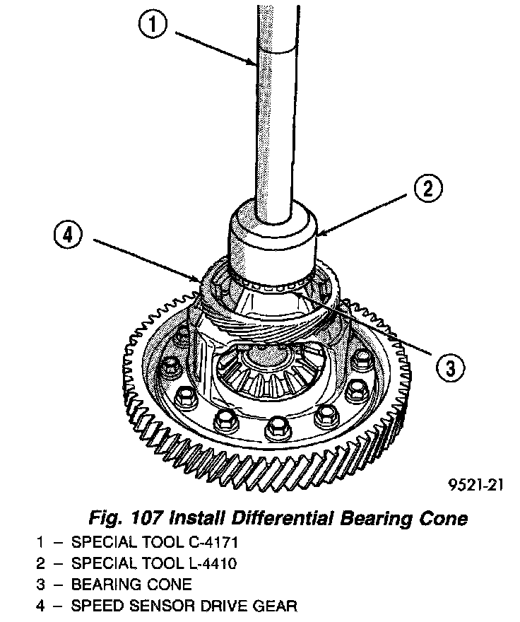 NOTE: A new speedometer drive gear must be installed on differential assembly. The lip on the speedometer drive gear must be positioned downward when installing onto differential assembly.