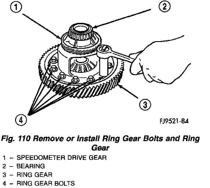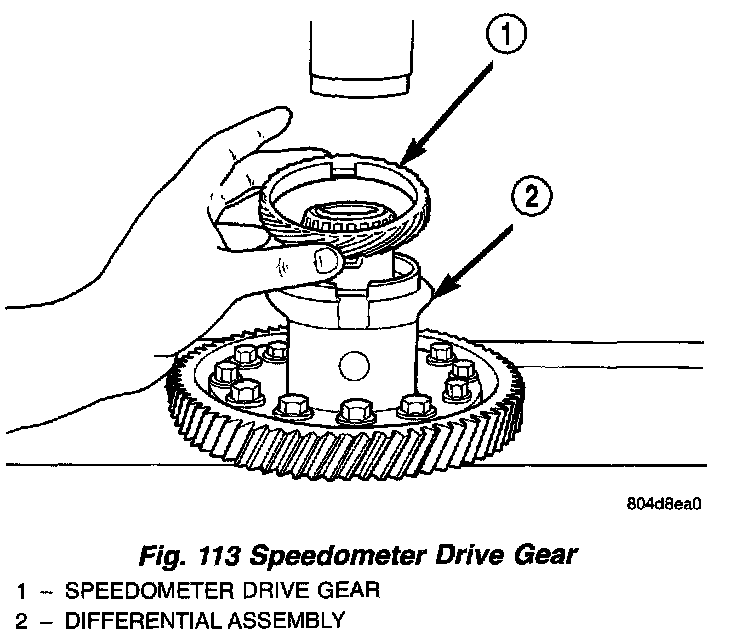 1. Position speedometer drive gear onto differential assembly (Fig. 113).