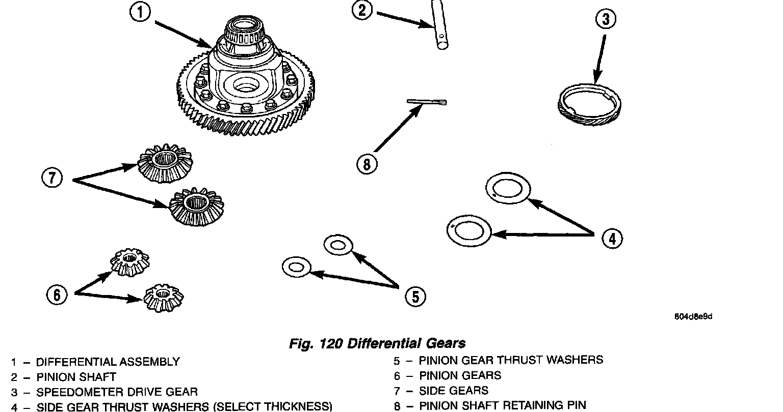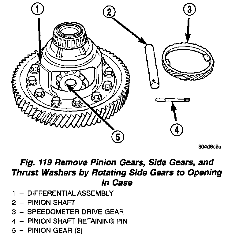 4. Remove differential gears (Fig. 120).