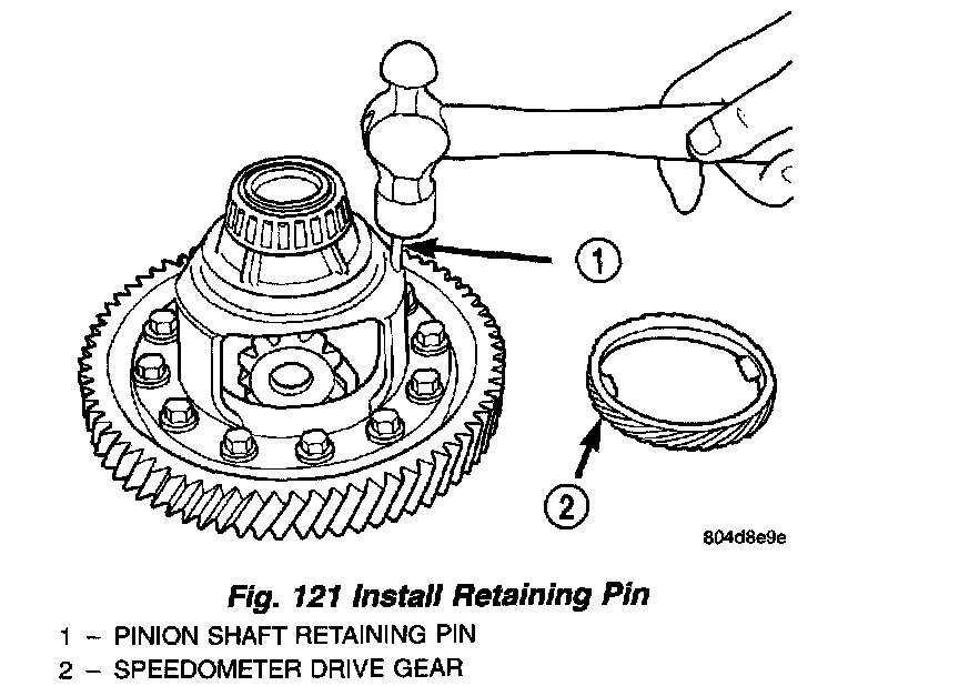 2. Install pinion shaft retaining pin (Fig. 121).