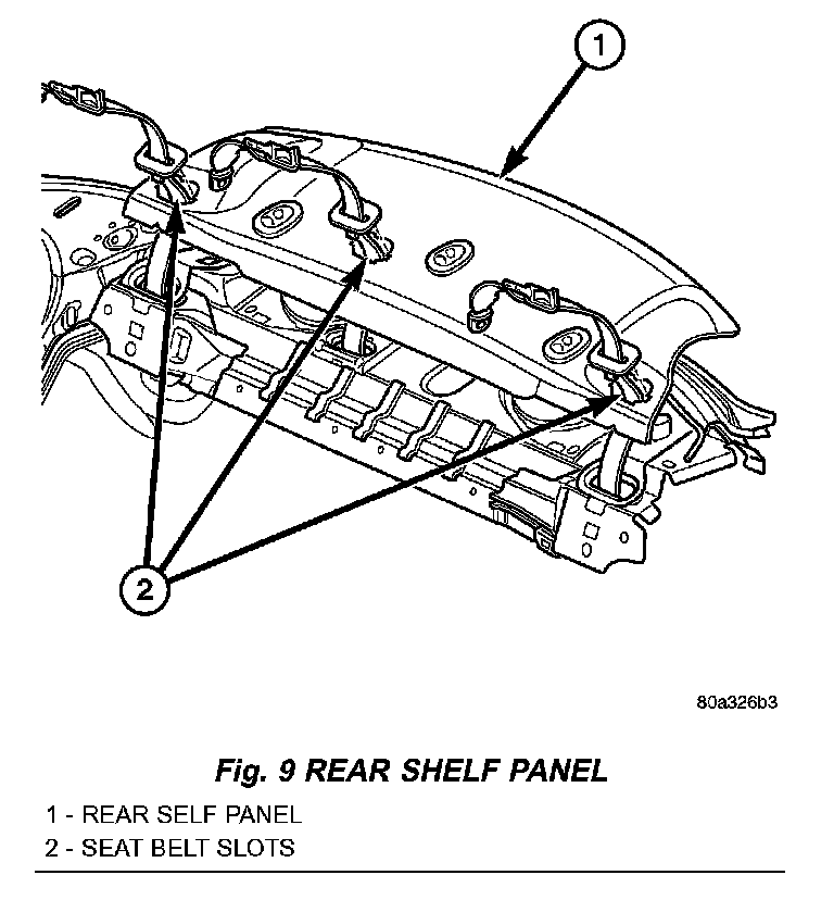 5. Remove rear shelf trim panel from vehicle (Fig. 9).