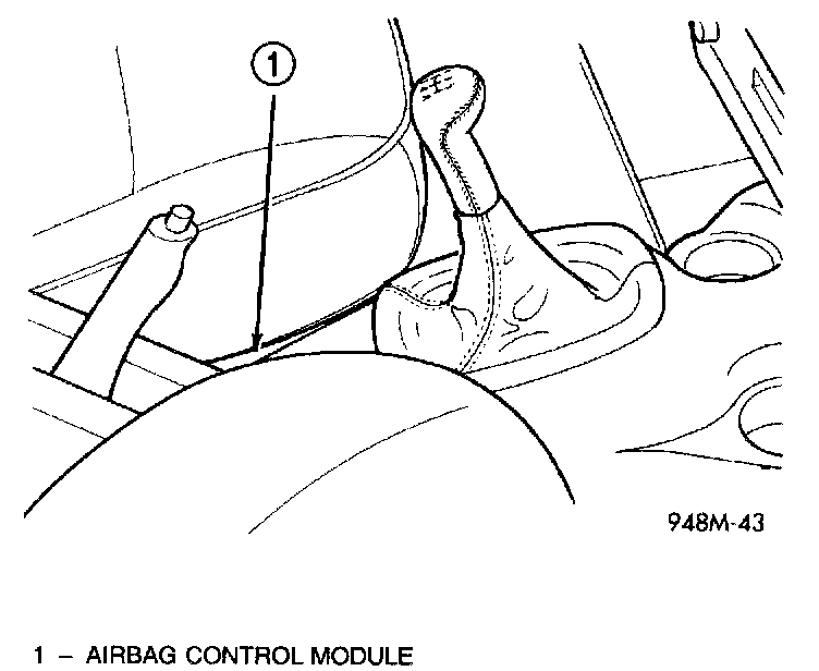 The Airbag Control Module (ACM) contains the sensing element, safing sensor, and energy reserve capacitor. The module is mounted on the tunnel/floor pan between the gear shift lever and the park brake lever. The ACM monitors the system to determine the system readiness. The ACM contains on-board diagnostics, and Will illuminate the AIRBAG warning lamp in the cluster when a fault occurs. The warning equipment is tested for six to eight seconds every time the vehicle is started.