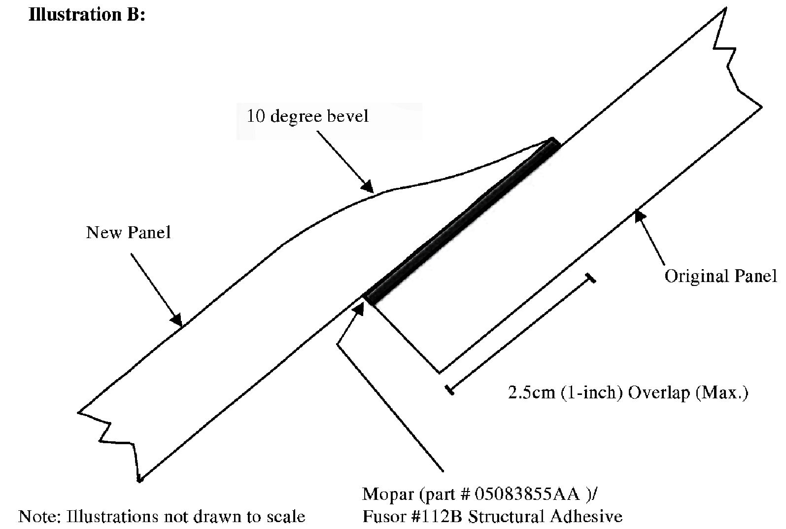 2. Pre-bevel to 10 degrees the outer side of the section joint edge of the new panel (See Illustration A)