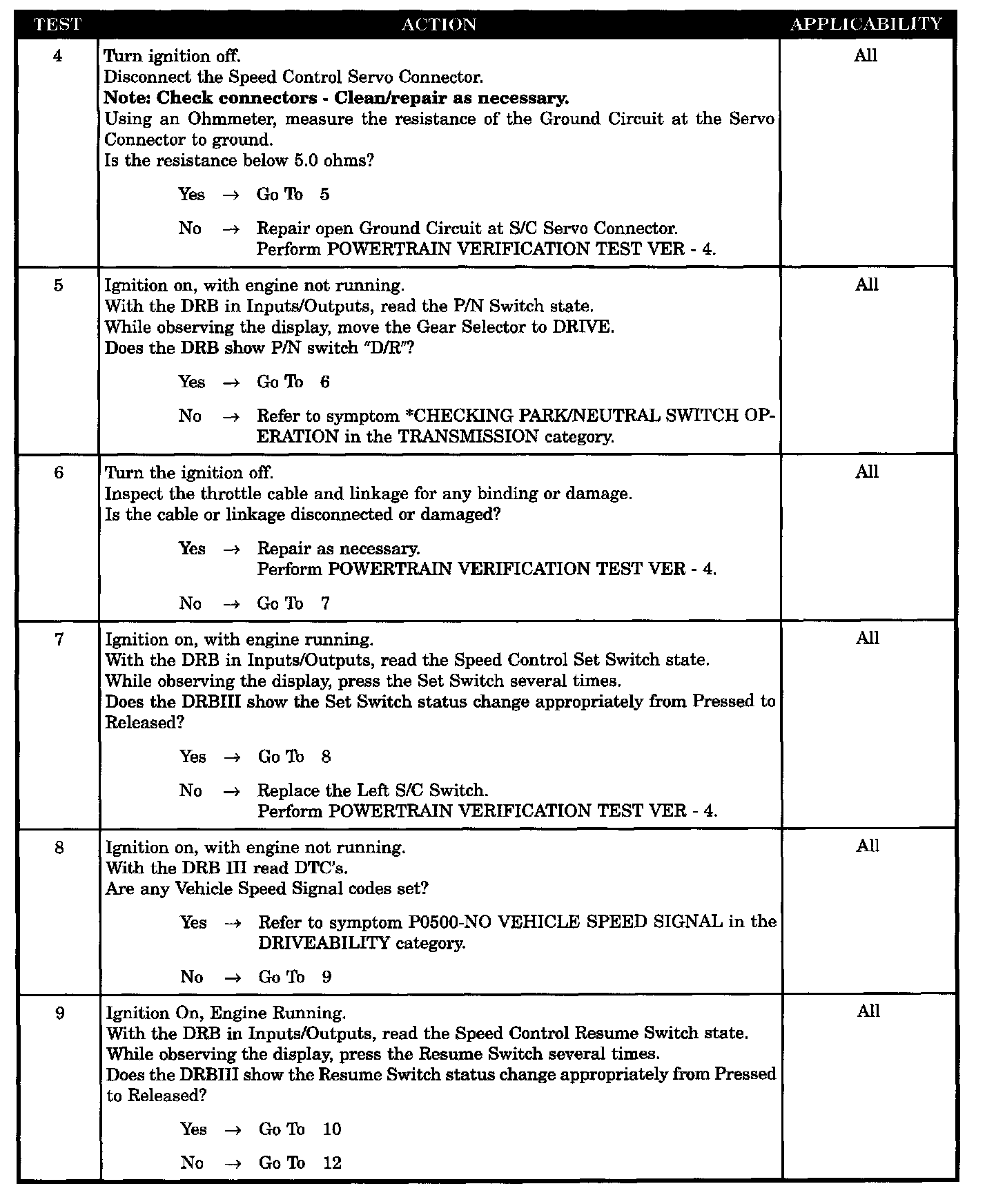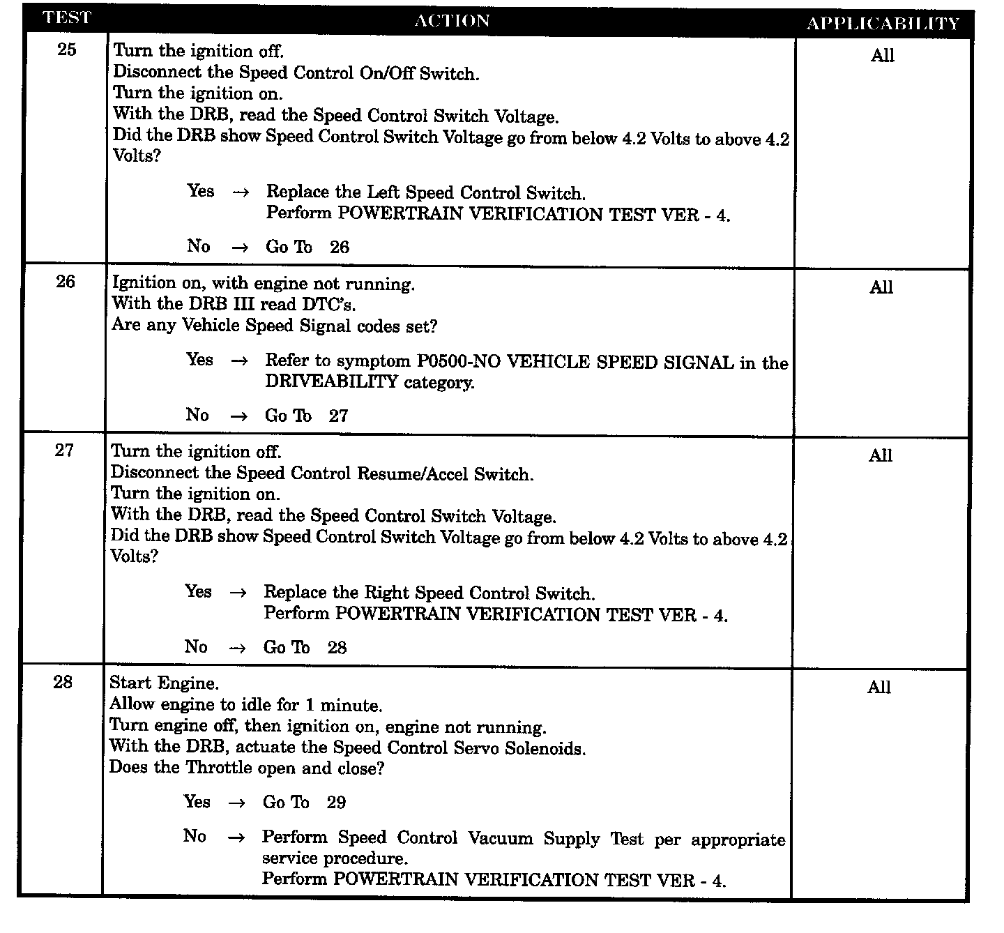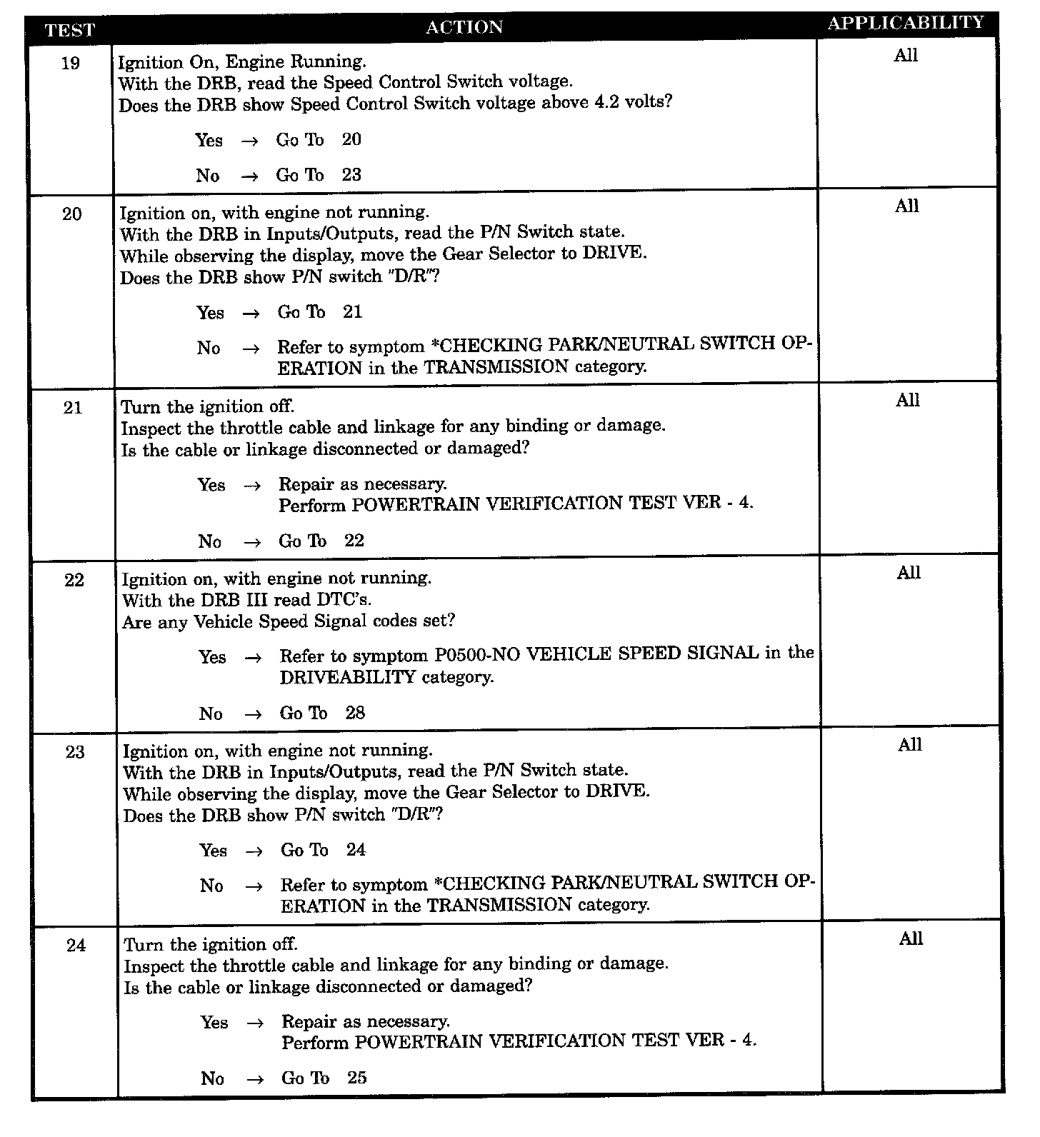 CHECKING SPEED CONTROL OPERATION WITH NO DTC'S PRESENT
