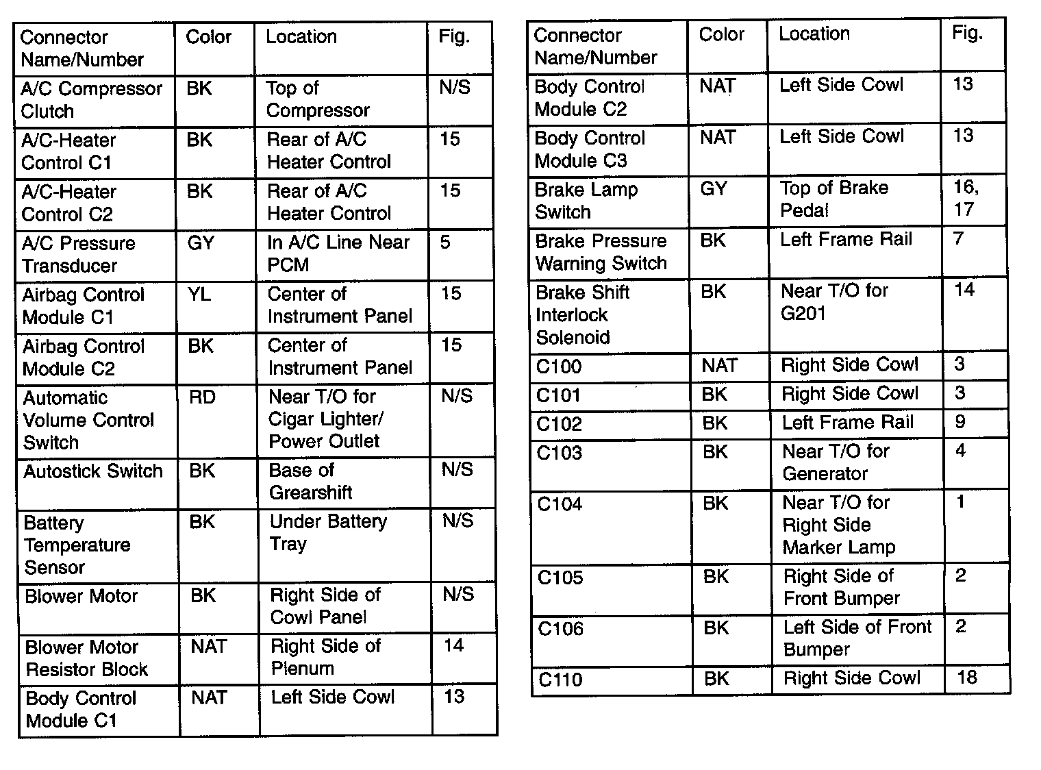 Connector/Ground Locations Component Index (Part 1 Of 5):
