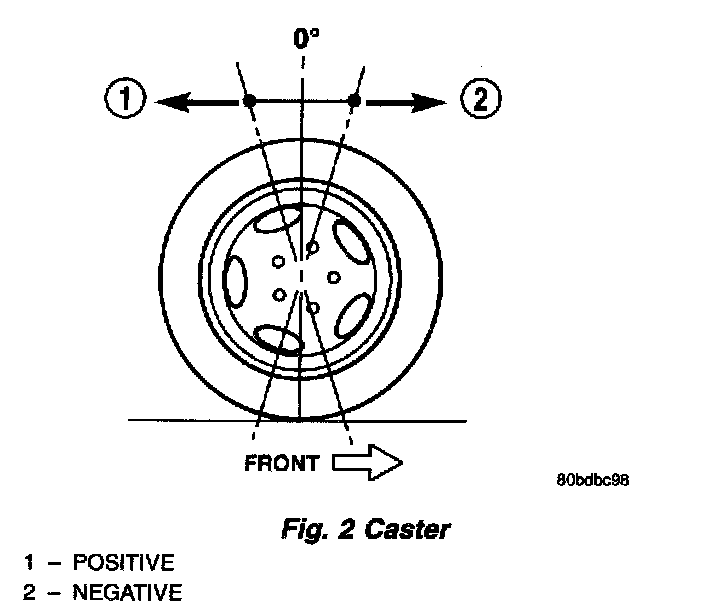- Caster is the number of degrees of forward or rearward tilt of the steering knuckle. Forward tilt provides a negative caster angle, while rearward tilt provides a positive caster angle. Although caster does not affect tire wear, a caster imbalance (side-to-side) on the vehicle may cause the vehicle to lead to the side with the least positive caster.
