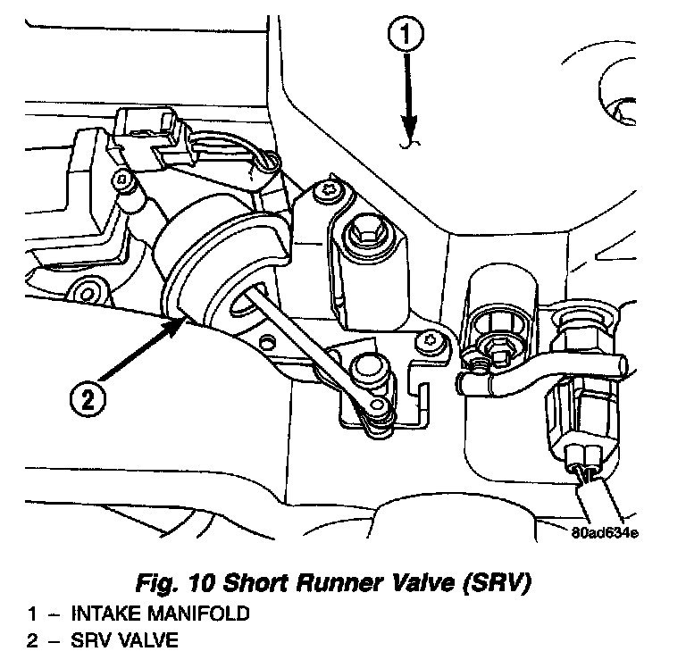 The [1][2]SRV system operates under WOT conditions above 5000 rpm to maximize engine performance. When actuated by the PCM, the SRV solenoid energizes, allowing mechanical linkage to redirect the intake air flow to six short runners. The PCM looks for a current spike when actuating the solenoid. If the spike is not present, the PCM sets the DTC.
