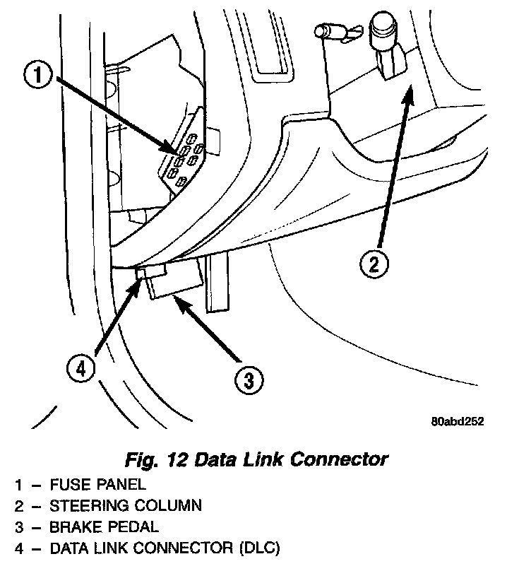 The data link connector (diagnostic connector) links the DRB scan tool with the Powertrain Control Module (PCM). Refer to On-Board Diagnostics.