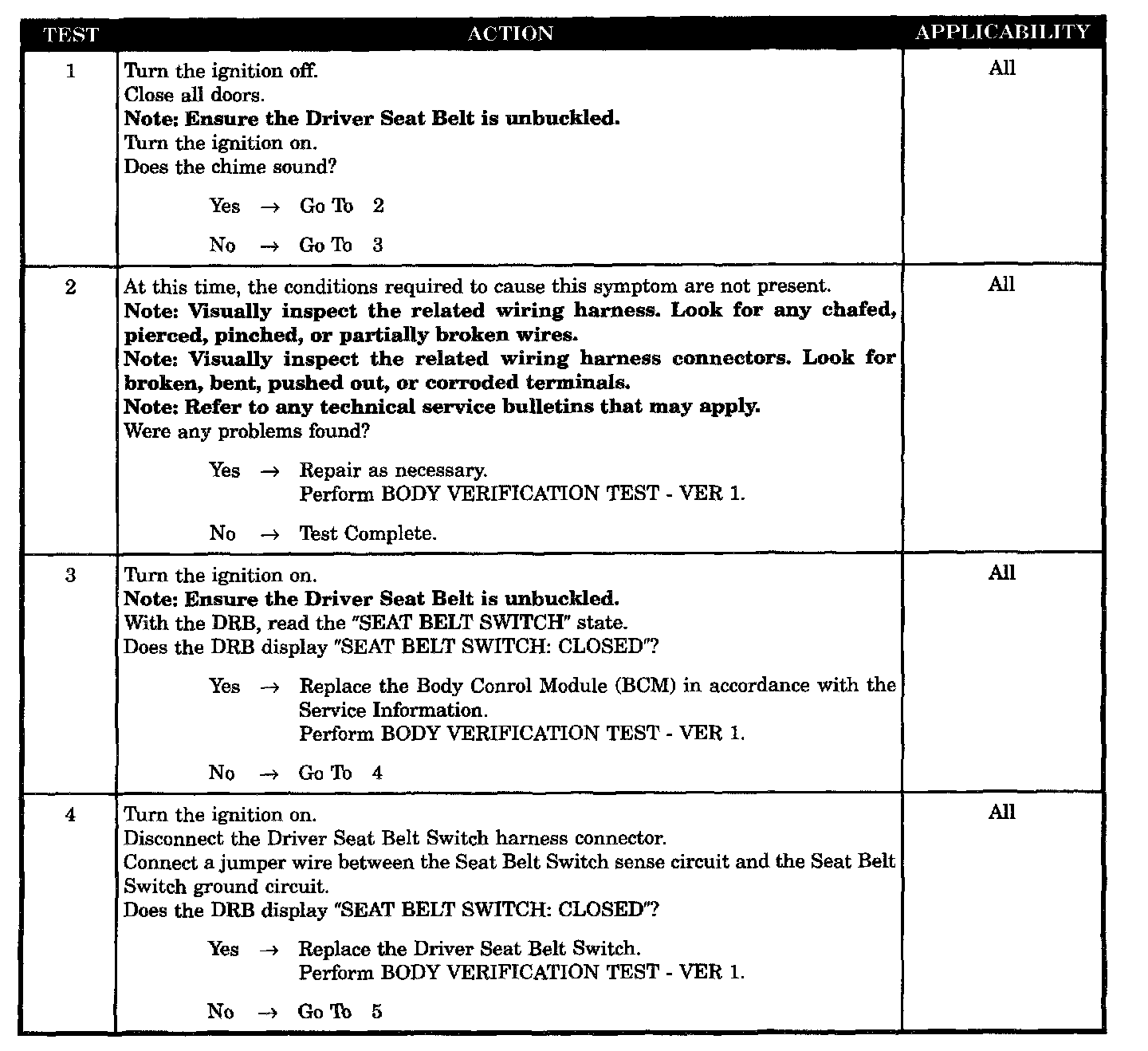 Chime Inoperative With Drivers Seat Belt Unfastened