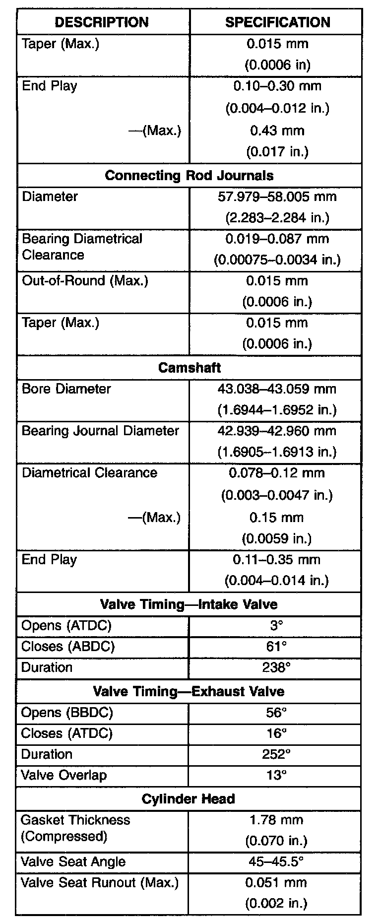 Engine Specifications