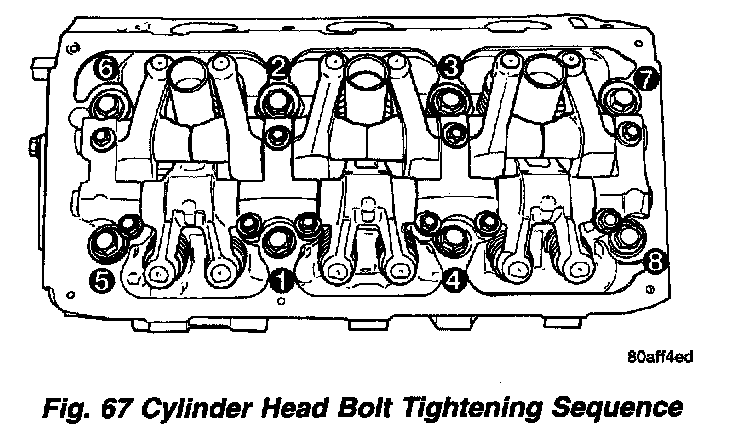 Tighten the cylinder head bolts in the sequence shown in. Using the 4 step torque-turn method, tighten according to the following values: