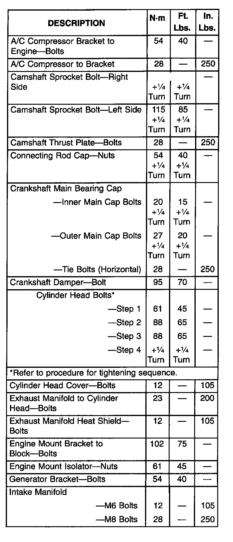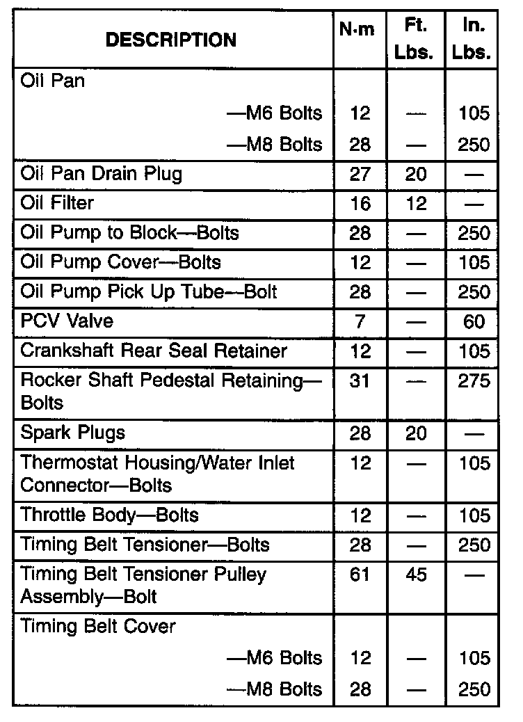Engine Torque Specifications