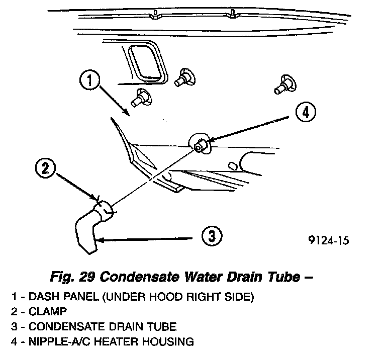 2. Locate rubber drain tube on right side of dash panel under the hood.