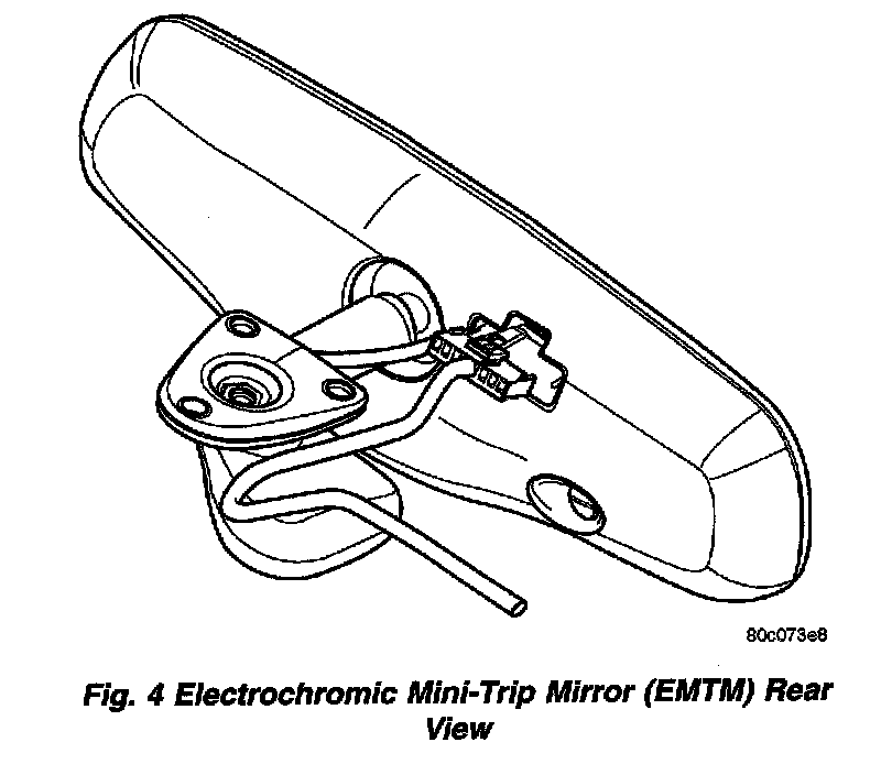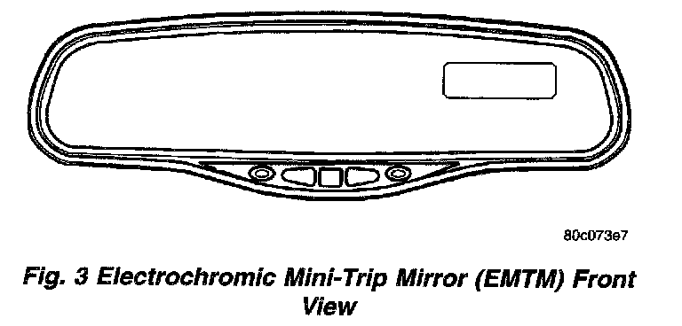 The Electrochromic Mini-Trip Mirror (EMTM) system, consists of an electronic control module with a Vacuum Fluorescent Display (VFD) and function switches. The EMTM electronic module displays the compass, trip computer, and temperature features.