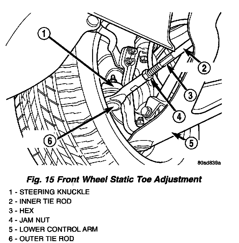 4. Using the hex on the tie rod,. rotate the tie rod in the direction required to obtain specified individual wheel toe position.