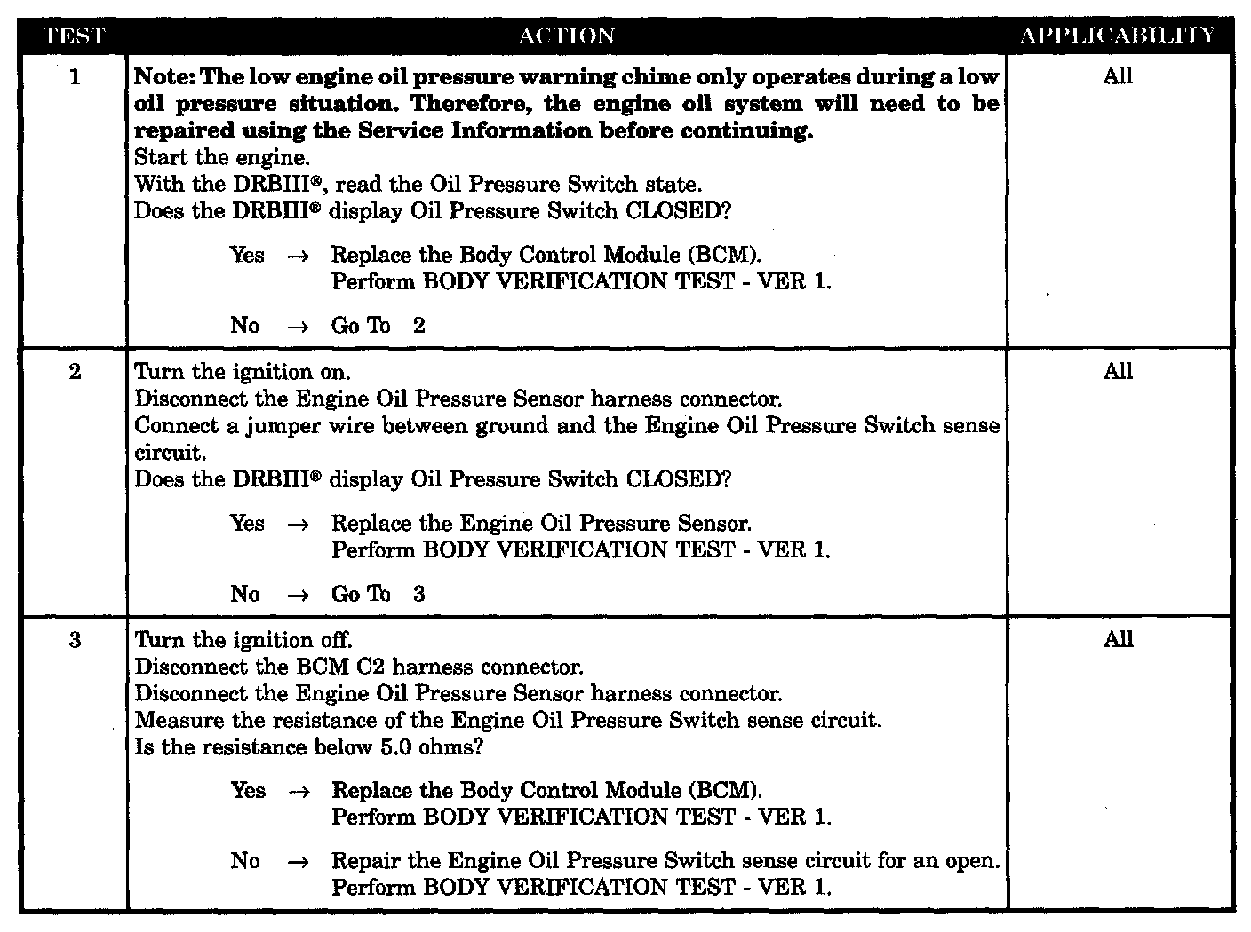CHIME INOPERATIVE WITH LOW OIL PRESSURE