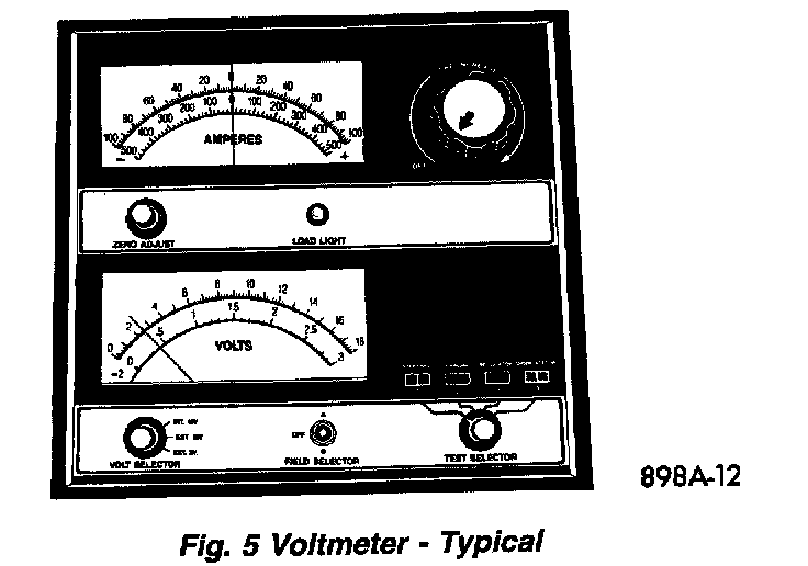 The following procedure should be used to recharge a completely discharged battery. Unless this procedure is properly followed, a good battery may be needlessly replaced.Fig. 5 Voltmeter - Typical:
