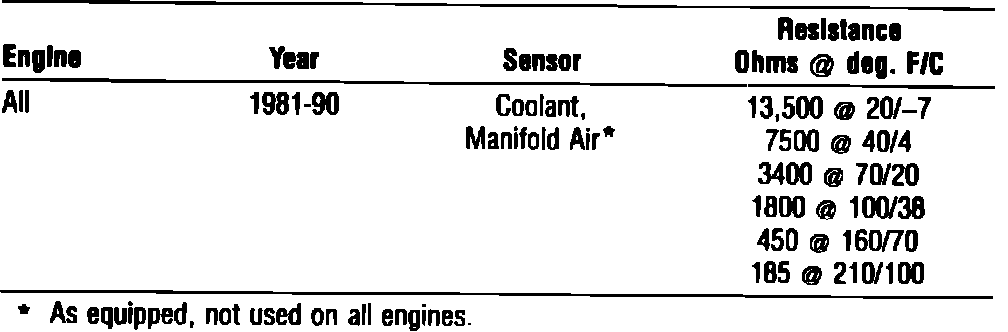 Coolant Temperature Sensor/Switch (For Computer): Specifications