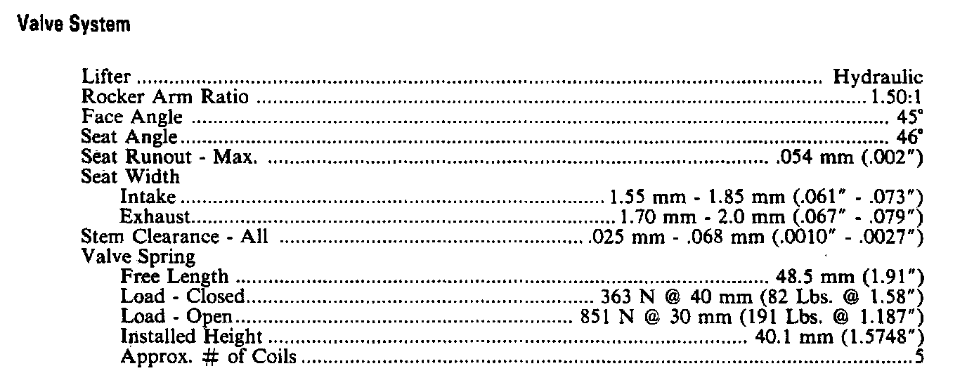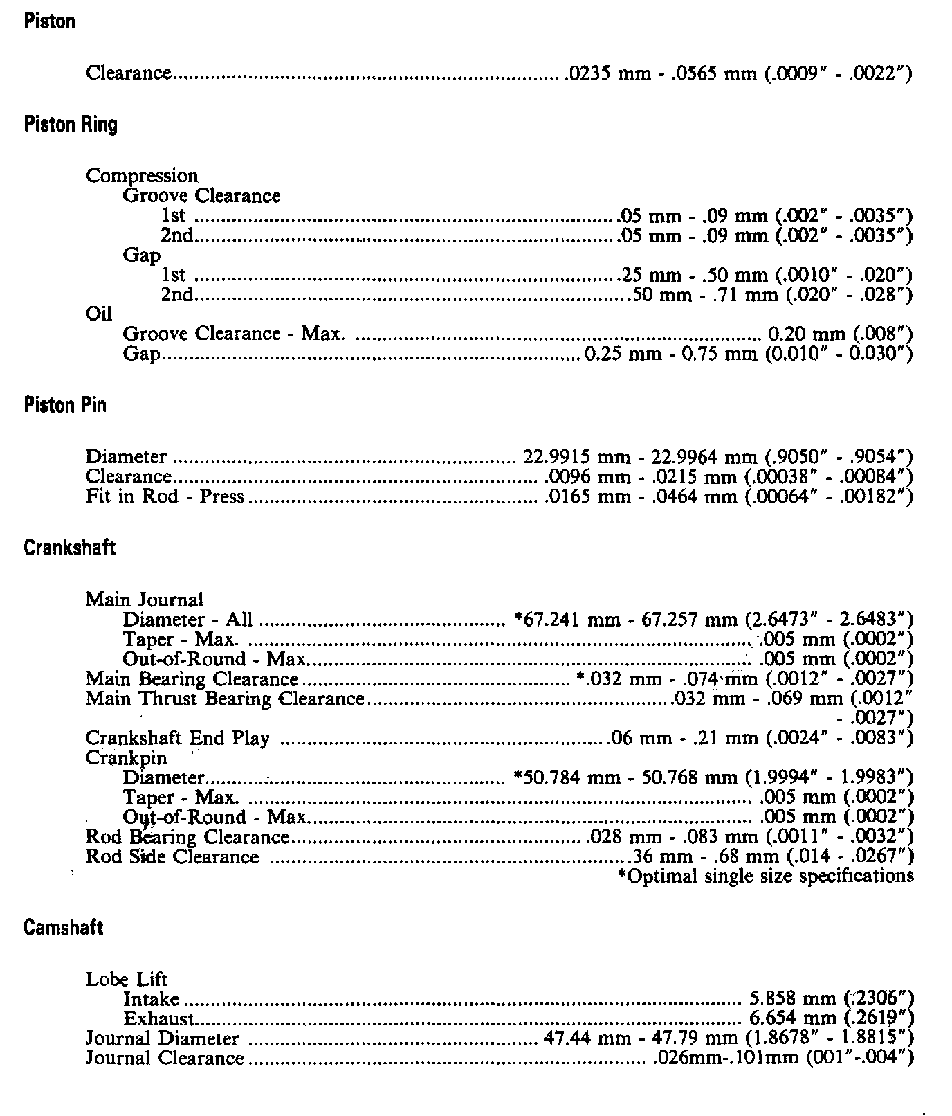 Engine Specifications: