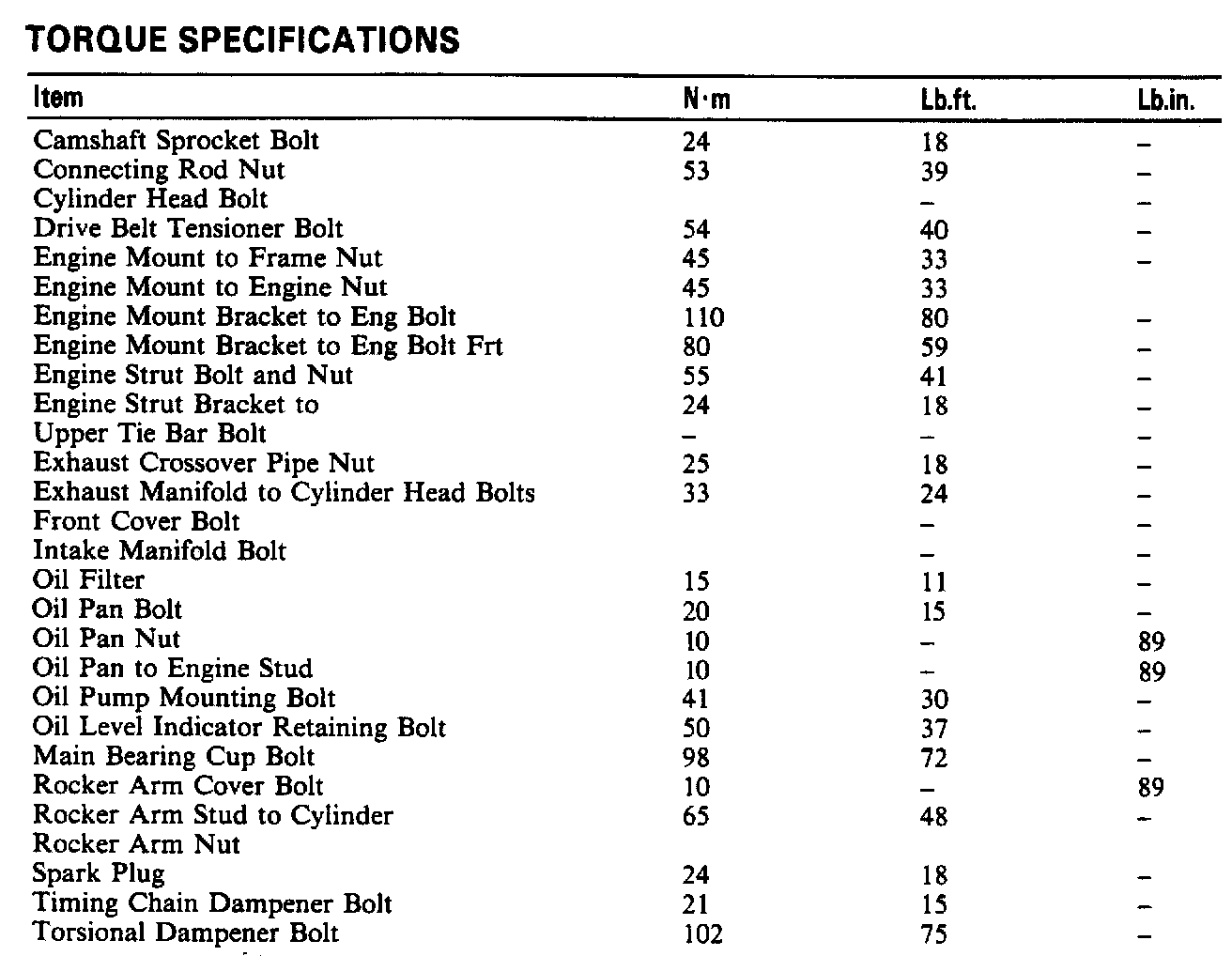 Torque Specifications: