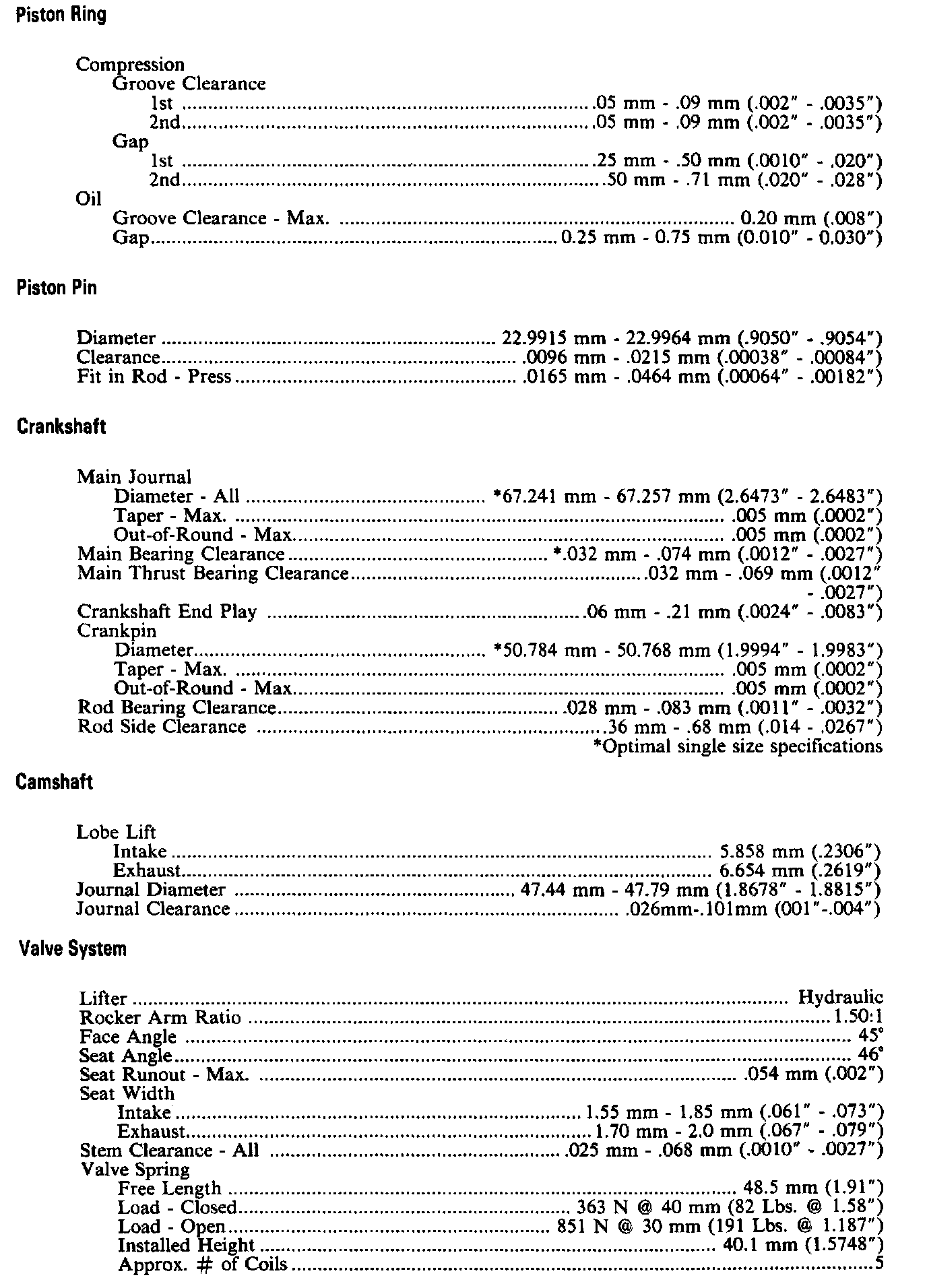 Continued Engine Specifications: