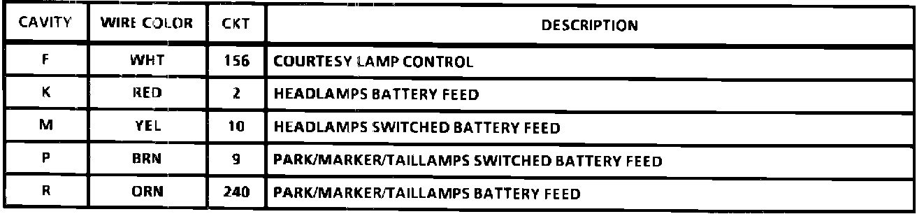 Headlamp Switch Connector Face:
