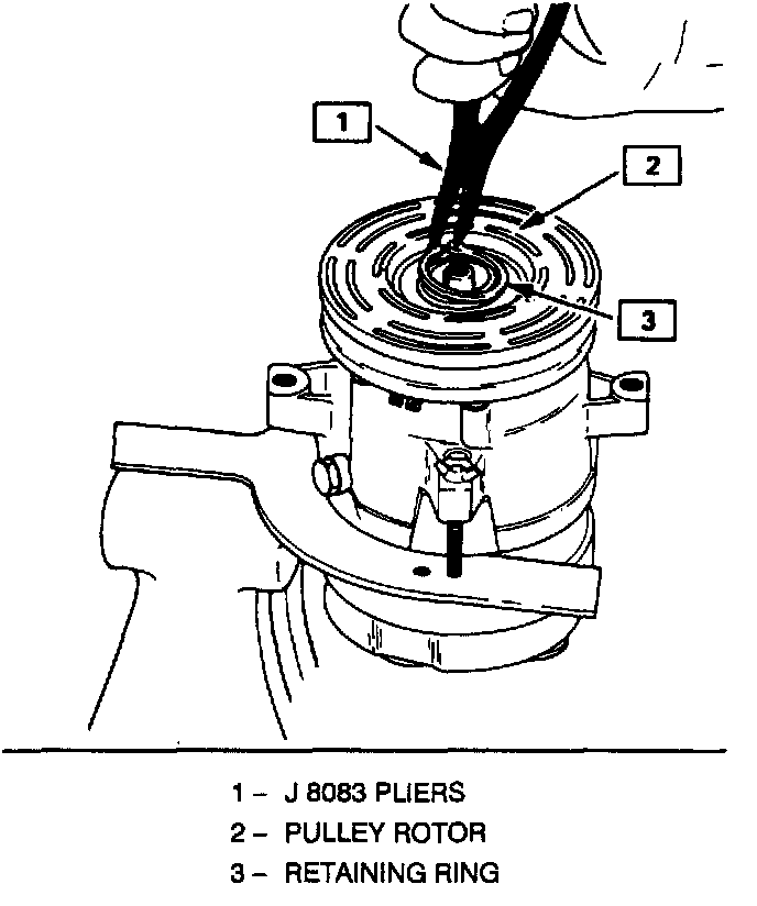 Removing Pulley Rotor & Bearing Assembly Retaining Ring: