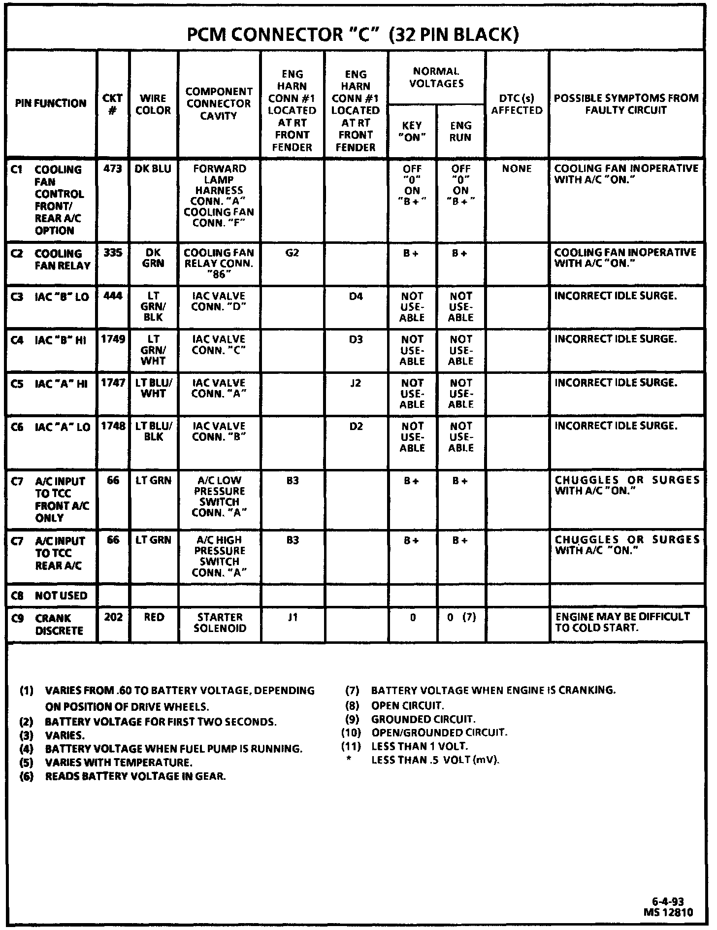 PCM Symptom Chart - PCM Connector "C":