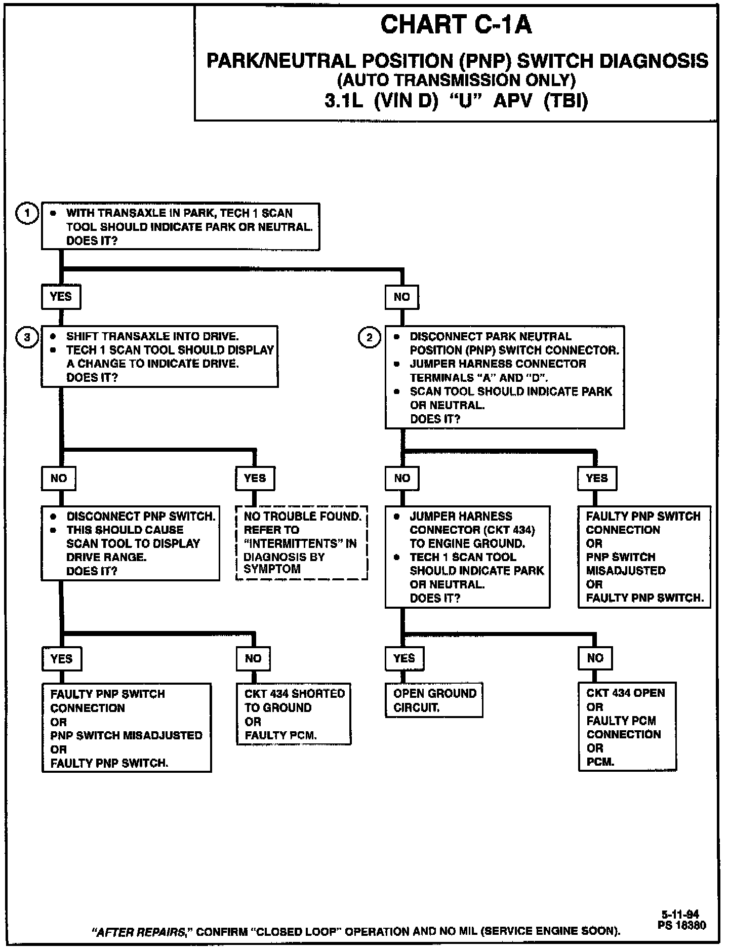 Chart C-1A Park/Neutral Position (PNP) Switch Diagnosis: